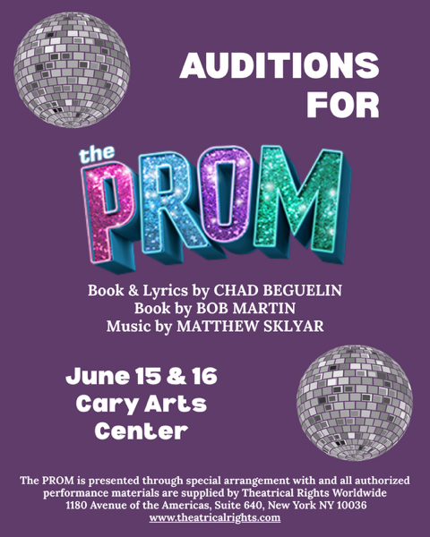 Auditions: Monday or Tuesday, June 15th or 16th at the Cary Arts Center. (101 Dry Avenue).