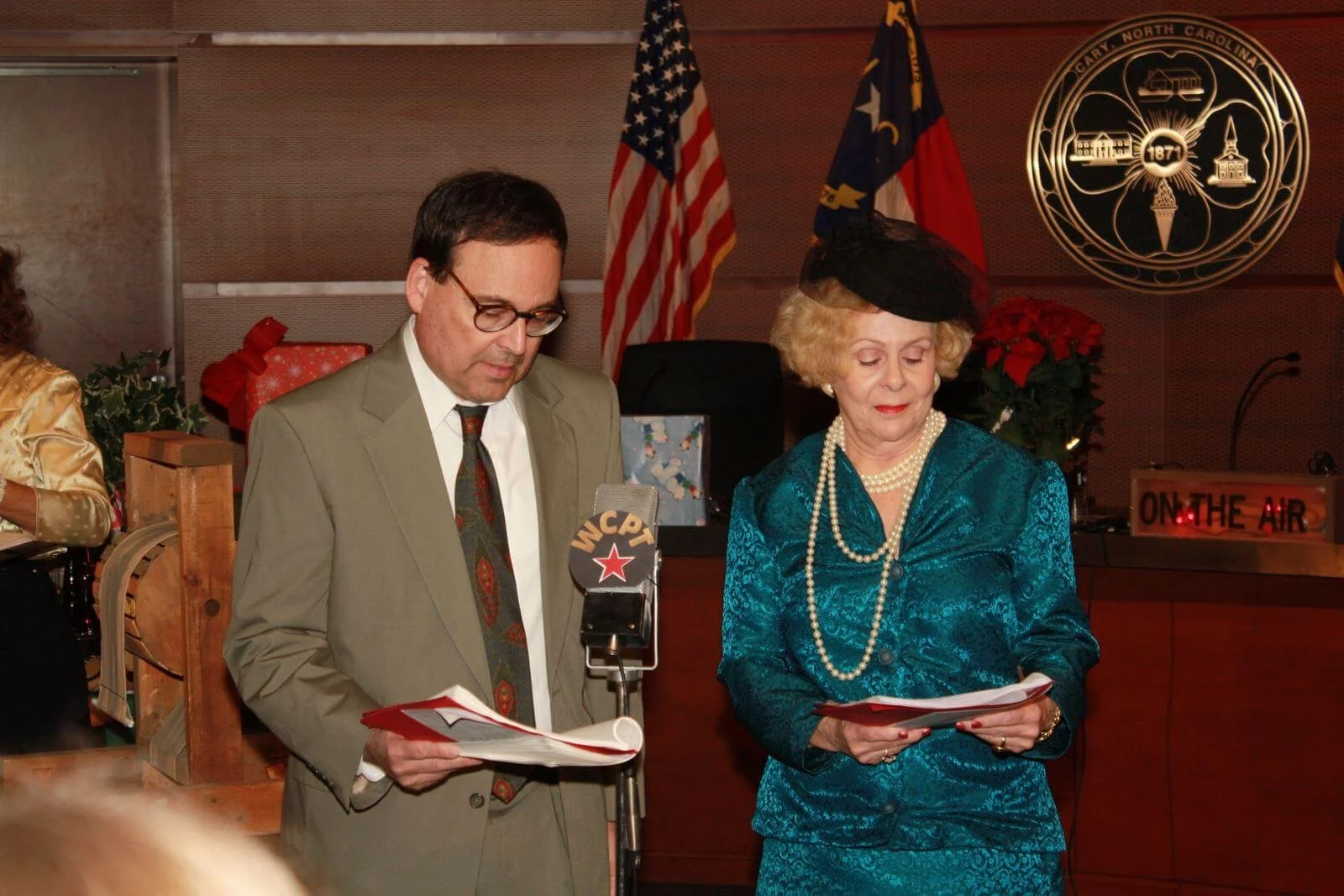 The show is directed by Debra Grannan with Musical Direction by Craig Johnson. Costume Design is by Amanda Edgerton. The production crew includes Phil Crone as Assistant Director, David Wolk as Sound Designer, Jon Dietz as Set Designer, Mary Misertino as Stage Manager and a quick moving foley and prop crew comprised of Carole Kelly, Dot Boulia and Angela Lowden! Performances will be in the elegant Cary Town Council Chambers in downtown Cary.